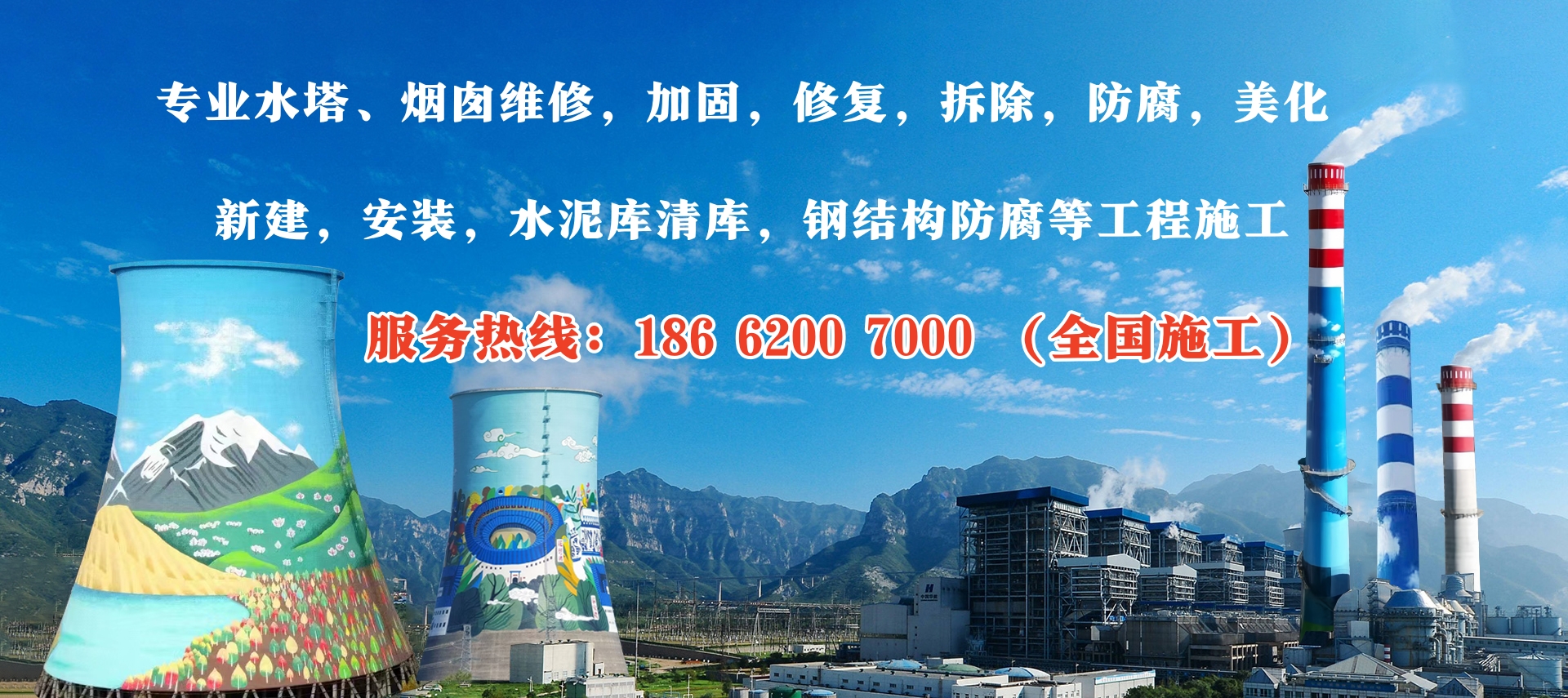 江蘇華電高空工程有限公司(全國施工)(工程熱線:186-6200-7000)我公司專業(yè)承接各類高聳構(gòu)筑物(煙囪,磚煙囪,混凝土煙囪,水泥煙囪,鋼煙囪,水塔,冷卻塔,灰?guī)欤鄮?,筒倉,鋼結(jié)構(gòu),爐架,碼頭,電廠,化工廠等)拆除,維修,防腐,美化,改造,新建,安裝,加固,刷新,探傷,檢測(cè),脫硫,保溫,水泥庫清庫,清灰,污水池防腐,鋼結(jié)構(gòu)除銹防腐,港口防腐,化工廠防腐,電廠爐架防腐等建筑工程施工的專業(yè)公司。